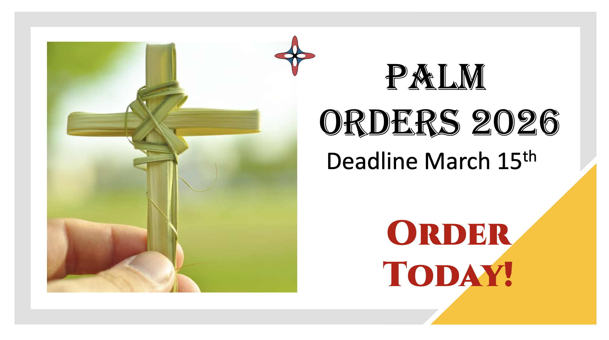 Click here to place your order for palms for Palm Sunday 2026.