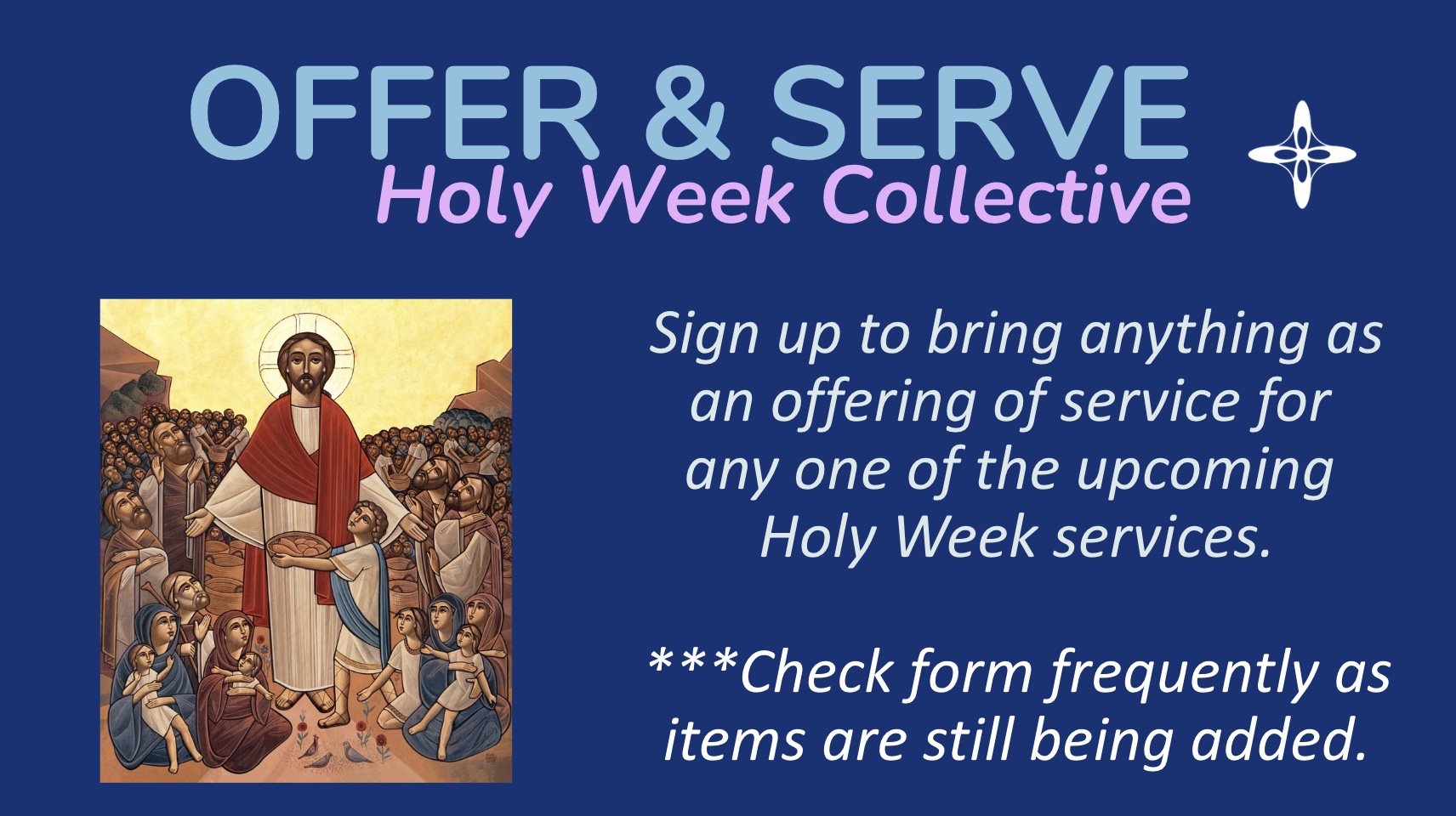 Holy Week is coming soon on April 6-10. For a full schedule, more information, and more resources, visit StMarkATL.Church/holyweek.