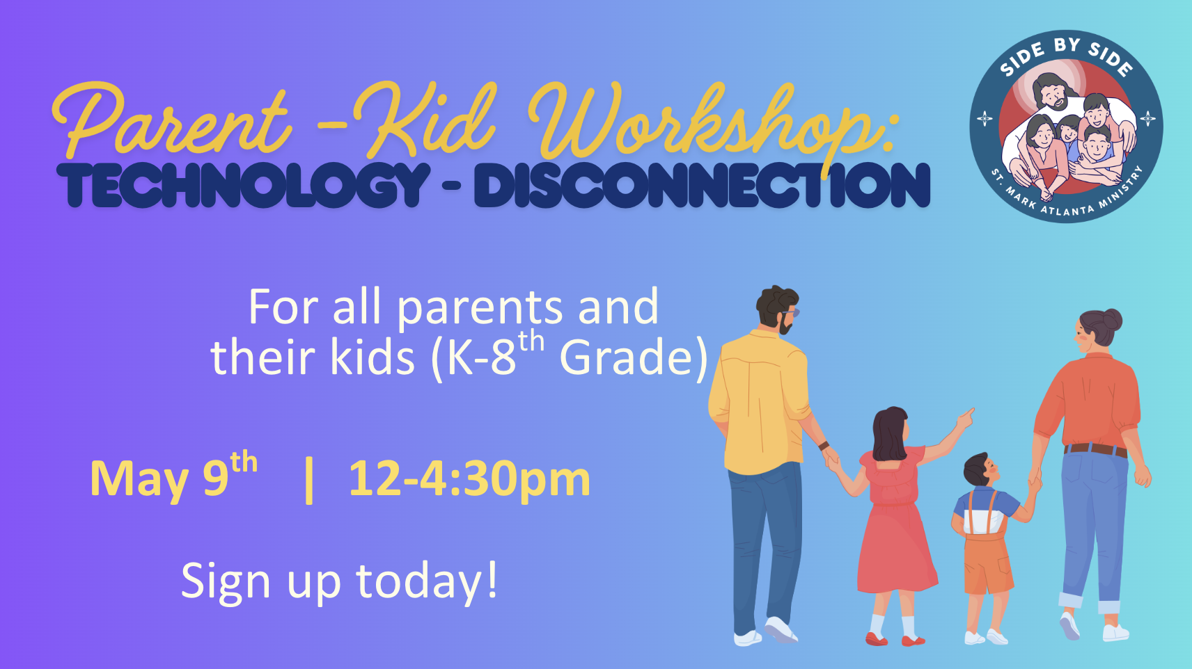 Technology is all around us now, but how can we learn to incorporate it and teach our kids to use it in a healthy way? Letβs talk about it at our Parent-Kid Workshop, happening May 9th at 12pm. For all parents and kids of Kindergarten through 8th grade.
