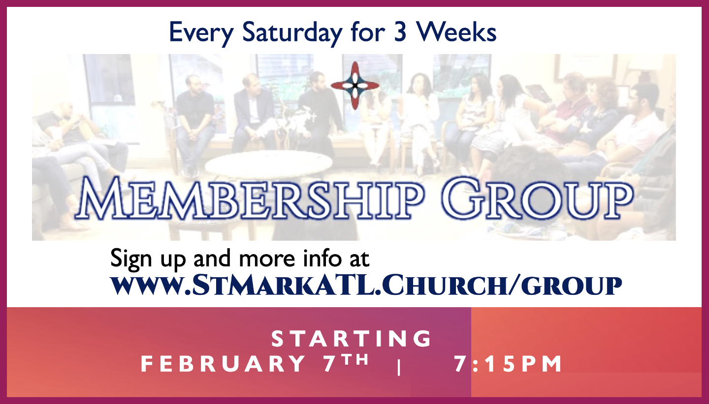 Membership Group is a must for baptism and if St. Mark church is your home church. This makes sure we all understand the fundamentals of Orthodoxy. This is open to everyone and anyone, so please do spread the word and click here sign up here.